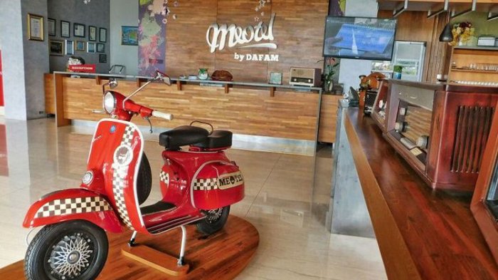 TRIBUNTRAVEL.COM - Begitu tiba di lobi hotel Meotel Kebumen, Jawa Tengah, ada sebuah vespa dan becak mini yang menyambut kita.