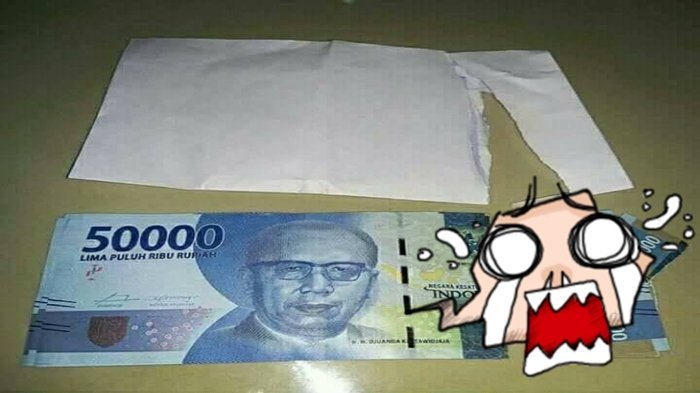 Uang didalam amplop ikut sobek bersama amplop ketika dibuka.