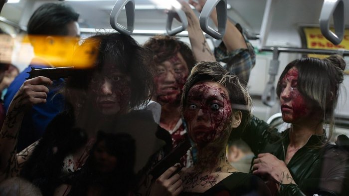 Nggak perlu kaget dan mengurungkan niat untuk naik kereta di Jepang jika melihat seluruh penumpangnya ada zombi jadi-jadian.