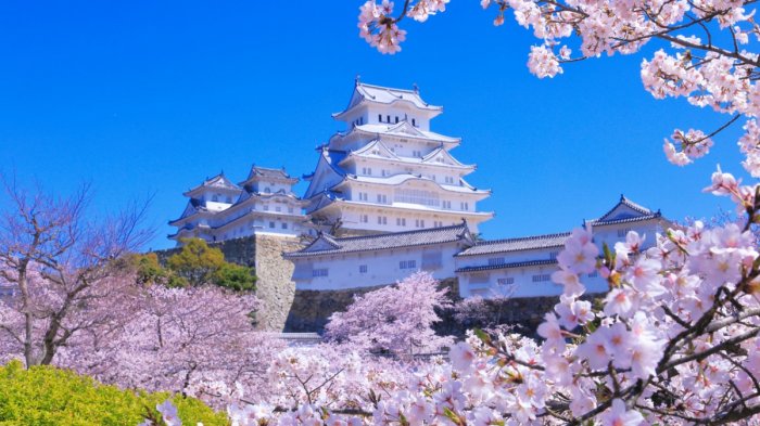 Taman Kokoen ini melatarbelakangi Benteng Himeji.