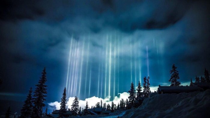 Fenomena ini juga sebenarnya diakibatkan oleh kristal es yang membiaskan cahaya, menciptakan ilusi pilar besar yang seolah-olah berasal dari surga di langit.