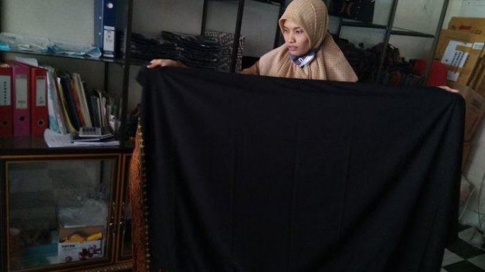 Ukurannya dua meter, plus selendang yang biasa digunakan menyilang di tangan atau bahu kaum ibu.