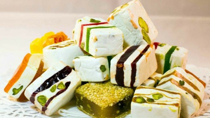 Malban terbuat dari potongan buah kering yang ditutup dengan kacang.