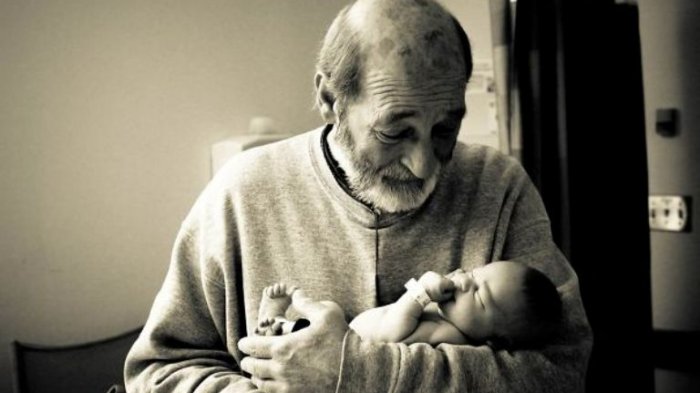 10. Kakek berusia 98 tahun yang menggendong cucu buyut perempuan yang berusia satu minggu.