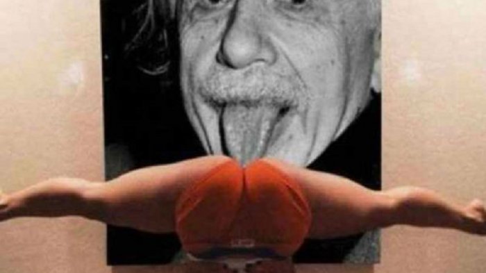 Gambar ini terlihat seperti lidah Albert Einstein juga penggemar yoga.
