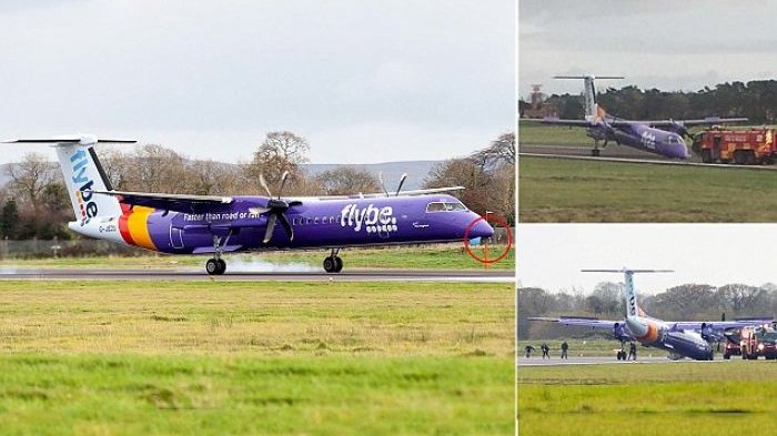 Dilansir dari situs MailOnline, Flybe membenarkan terjadinya insiden pesawat mereka Bombardier Q-400 dengan nomor penerbangan BE331 yang mendarat tanpa roda hidung.