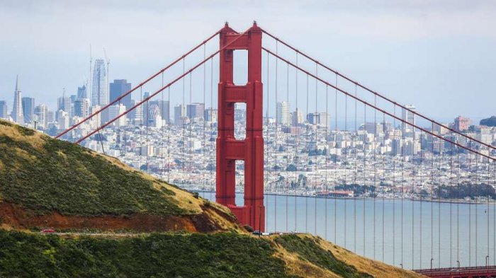 Jembatan Golden Gate terletak di San Francisco dan mungkin merupakan daya tarik kota yang paling terkenal.