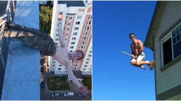 Pria ini benar-benar menantang maut dengan melakukan tindakan yang sangat berbahaya.