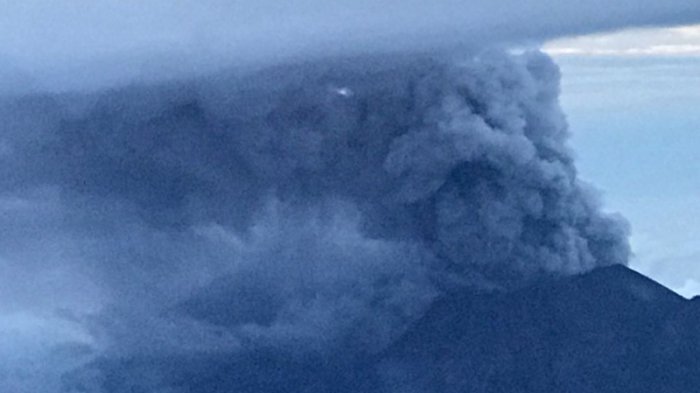Letusan juga disertai dentuman yang terdengar sampai radius 12 kilometer.