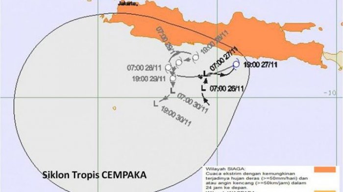 Siklon tropis Cempaka mengakibatkan siaga cuaca ekstrem selama tiga hari mulai Senin (27/11) kemarin.