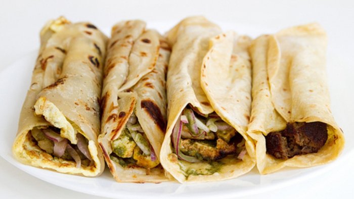 Berasal dari Kolkata, India, kati roll merupakan kebab berisi daging ayam atau kambing yang dilapisi roti paratha.