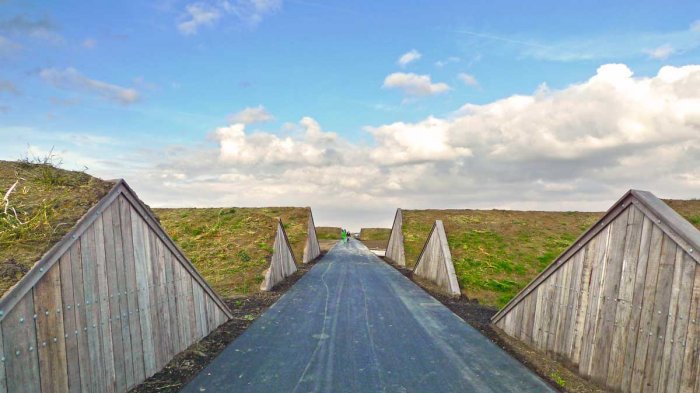 "Di dalam punggung bukit, pengunjung dapat berjalan melalui jalan setapak seperti labirin atau berpiknik di luar ruangan oleh dinding pegunungan, " tulis Fast Co Exist.