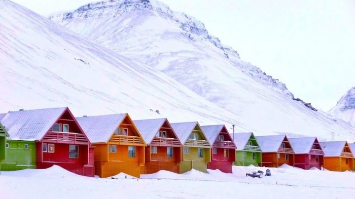 Satu pemandangan unik di Longyearbyen adalah rumahnya yang berwarna-warni.