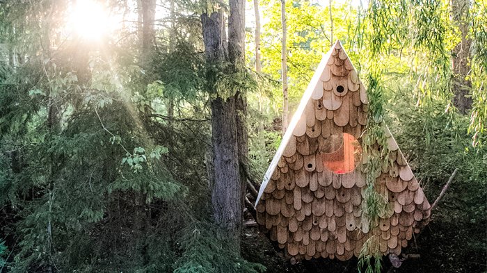 Sangkar burung yang tersembunyi di hutan ini merupakan karya dari perusahaan desain yang berbasis di Calgary Studio North.