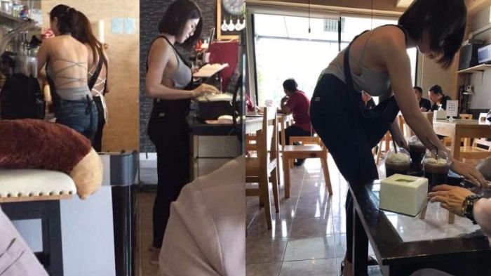 Selain kopi hebat mereka (berdasarkan ulasan pelanggan), pelanggan melihat bahwa seragam pramusaji memperlihatkan punggung mereka yang seksi, yang diyakini orang adalah karena cuacanya.