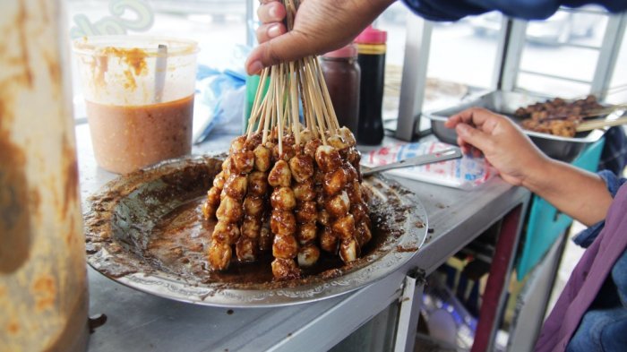 Tahu kecil-kecil yang juga disajikan dengan ditusuk ini awalnya merupakan menu coba-coba.