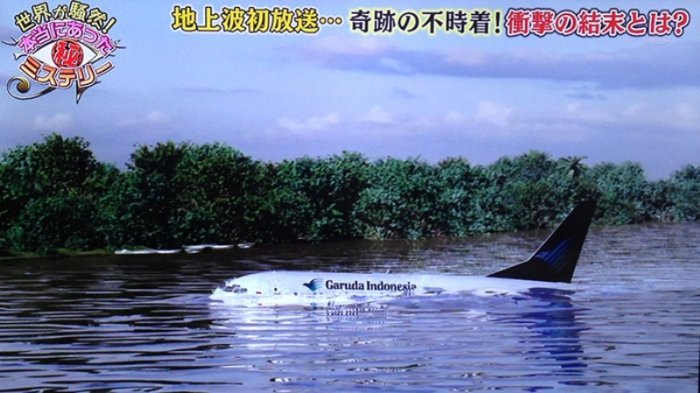 TRIBUNTRAVEL.COM - Pesawat Garuda Indonesia GA421 tanggal 16 Januari 2002 rute Surabaya-Yogyakarta yang mendarat darurat di Sungai Bengawan Solo menjadi acara misteri di televisi Tokyo sekitar pukul 20.00, Jumat (8/12/2017).