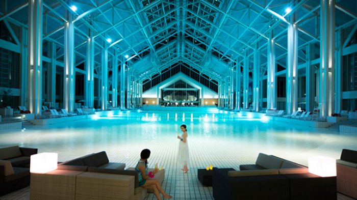Di Mina Mina Beach, kolam renang arus dalam ruang terbesar di Hokkaido, Jepang memberi kertas aturan tertulis bagi setiap pengunjung.