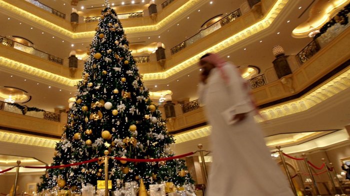TRIBUNTRAVEL.COM - Sebuah hotel di Abu Dhabi pernah memerkan sebuah pohon Natal termahal di dunia.