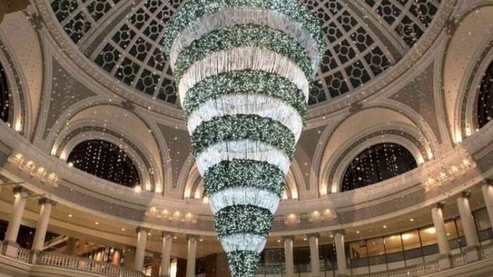 Penerangan pohon yang mirip lampu gantung ini telah resmi menyala sejak 30 November lalu.
