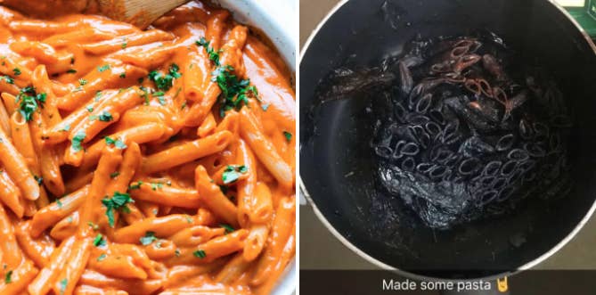 7. Saat maksud hati berkata untuk membuat pasta, tapi hasilnya malah jadi sehitam arang.