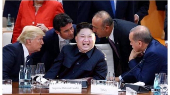 Foto pemimpin dari berbagai negara yang terlihat mendiskusikan sesuatu ini adalah hasil editan Photoshop.