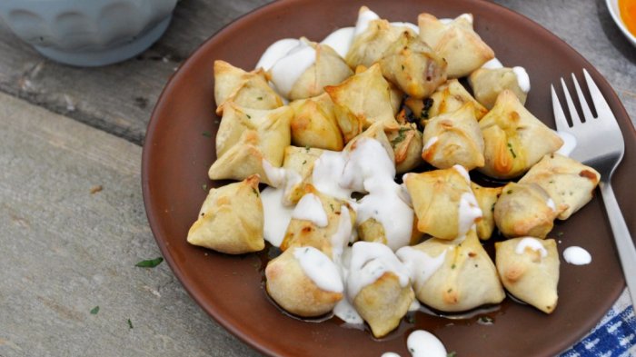 Manti, pangsit khas Turki yang berisi daging sapi atau domba, dan disajikan dengan yogurt atau mentega.