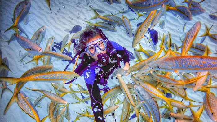Seperti yang dilakukan oleh seorang instruktur penyelam dari Bahama yang berusia 23 tahun ini.