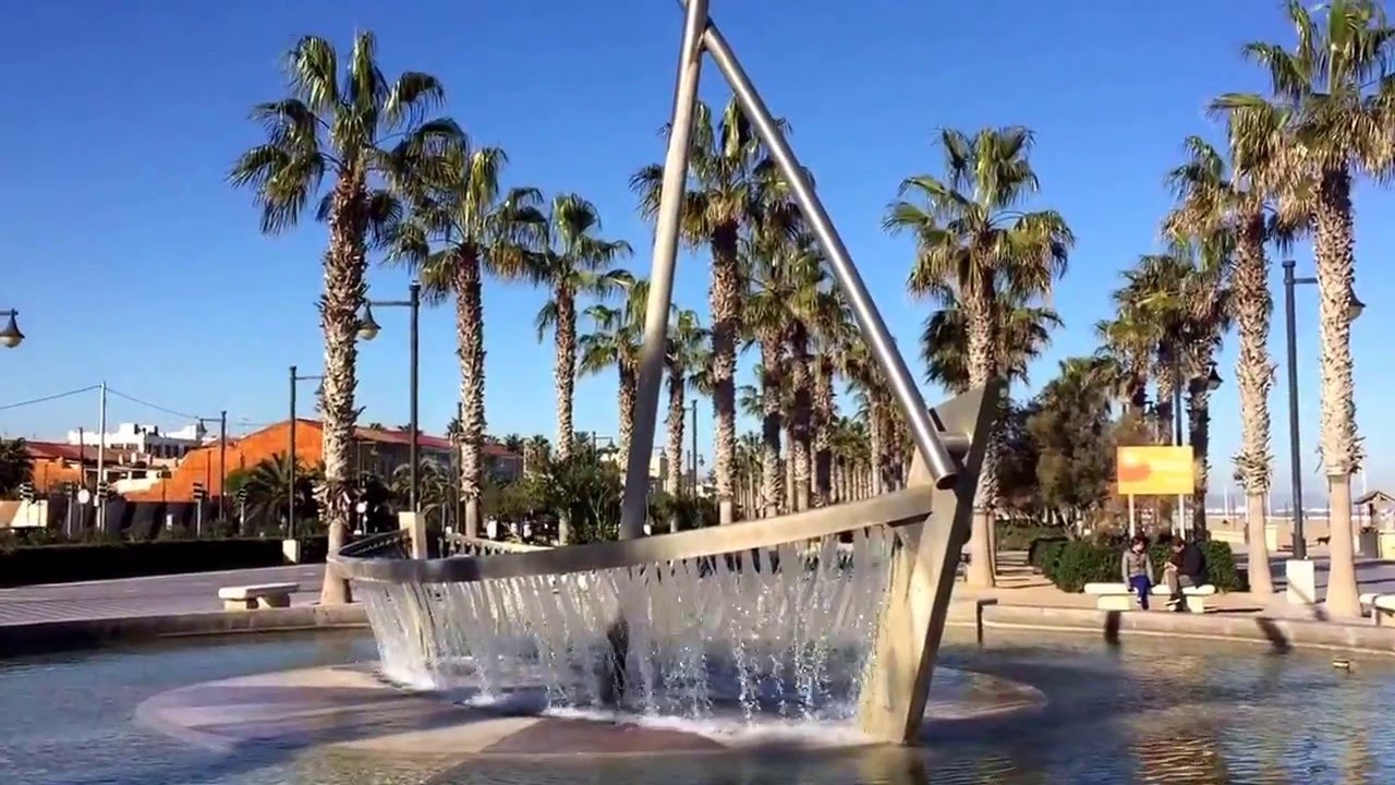 Air mancur pahatan di Valencia ini dirancang untuk memberi ilusi sebuah perahu yang memberikan efek semburan air yang unik.