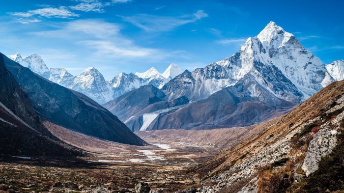 Ama Dablam dianggap sebagai yang paling populer di Himalaya South West Ridge dengan pegunungan batu terbuka, menara pengintai, dan padang berselimut es.