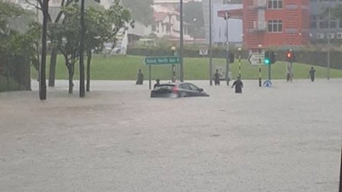 TRIBUNTRAVEL.COM - Banjir melanda sejumlah kawasan di Singapura, Senin (8/1/2018).