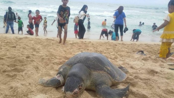 TRIBUNTRAVEL.COM - Seekor penyu berukuran besar ditemukan warga terdampar dalam keadaan sudah membusuk di kawasan Pantai Sepanjang Kemadang, Tanjungsari, Gunungkidul, Yogyakarta, Minggu (7/1/2018) pagi.