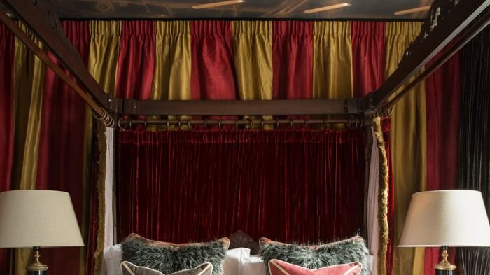 Kamar utama dalam apartemen itu didesain dengan gaya seperti kamar dalam asrama Gryffindor, nyaris sama seperti yang kita lihat di film Harry Potter.