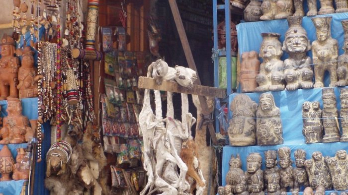 Diantara barang-barang "klenik" yang dijual di sana, yang paling aneh adalah janin llama yang dikeringkan.