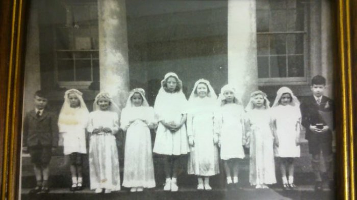Coba perhatikan bagian jendela sebelah kanan, ada seorang anak kecil dengan tatapan tidak senang seperti ingin ikut foto.