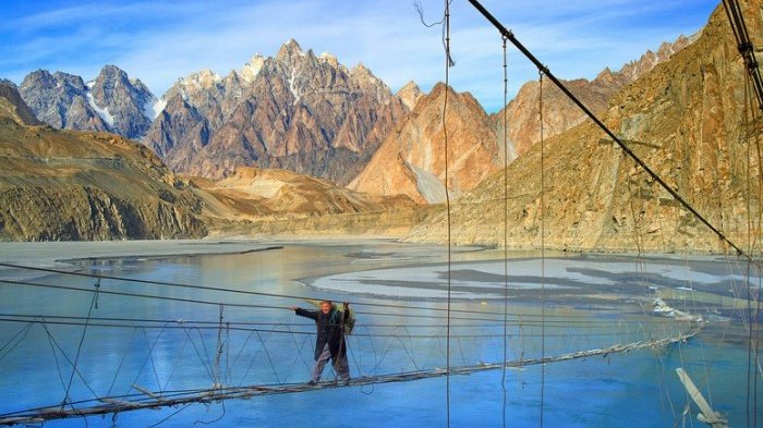 Jembatan ini digunakan untuk menyeberangi Danau Borit di Pakistan.