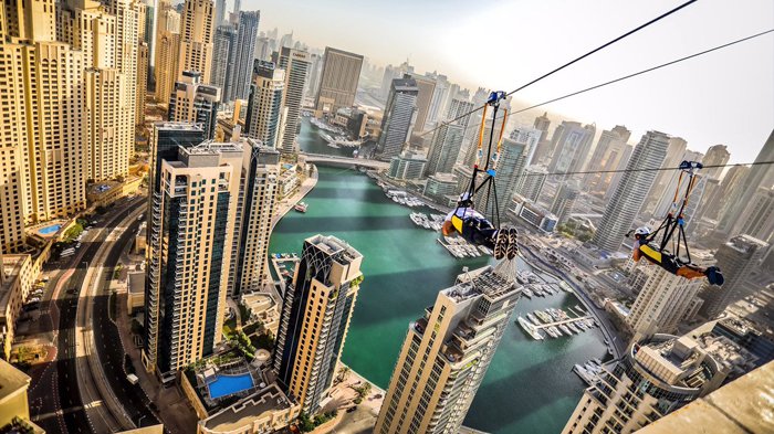 Menjadi zip line terpanjang di duniadengan panjangan satu kilometer penuh dengan ketinggian 170 meter dari permukaan tanah, XLine Dubai Marina sekarang sudah dapat dinikmati untuk umum.
