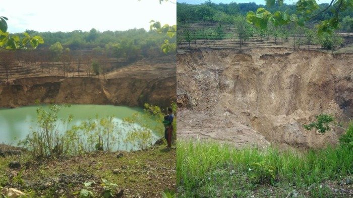 "Selain airnya habis, sisi timur luweng juga mengalami longsor sehingga lubang melebar," imbuh Wartinah, warga lainnya.