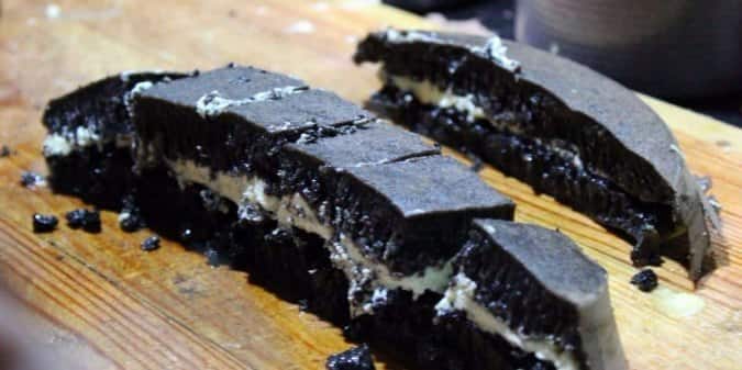 Sesuai dengan namanya, martabak ini menghidangkan martabak hitam dari hasil racikan blackforest.
