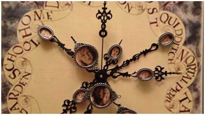 Sementara jam keluarga Weasley memiliki sembilan jarum jam yang masing-masing memiliki foto anggota keluarga Weasley dan menunjukkan apakah mereka sedang berada di rumah, sekolah, tersesat, ataupun berada dalam bahaya.