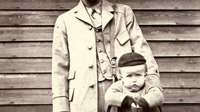 Meskipun hanya ada beberapa rekaman contoh anak-anak yang dikirim melalui pos, di sini seorang pria berpose dengan anak-anak yang akan dikirim lewat pos.