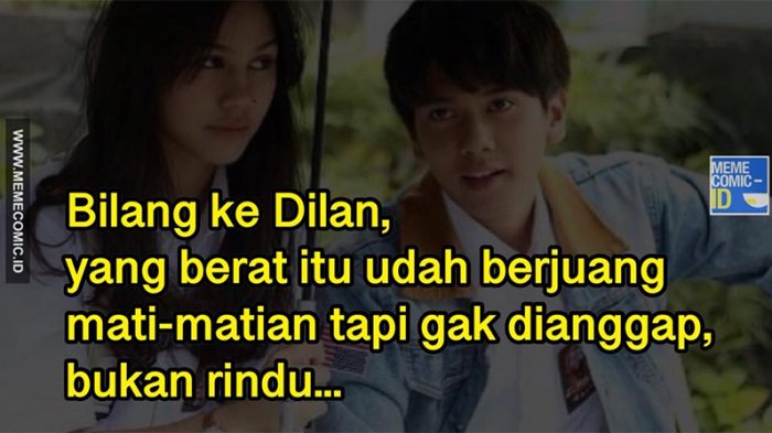 "Bilang ke Dilan, yang berat itu nagih utang ke temen, bukan rindu..."