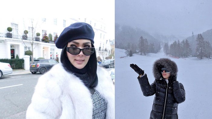 Dalam postingan ini terlihat Syahrini memakai OOTD serba putih saat musim dingin.