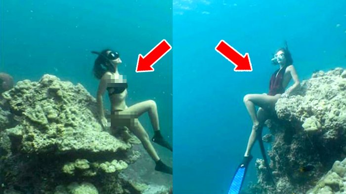 TRIBUNTRAVEL.COM - Dua top model asal Thailand berpose di dalam laut tepat berada di atas trumbu karang.