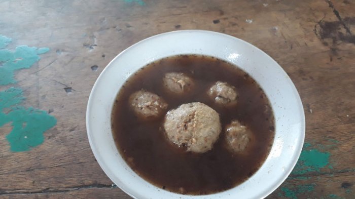 TRIBUNTRAVEL.COM - Warung bakso hitam Pak Bewok memiliki ciri khas kuah bakso berwarna hitam.