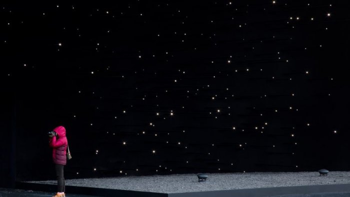 Bangunan Paviliun Hyundai ini begitu gelap sehingga nampak seperti "potongan angkasa luar".