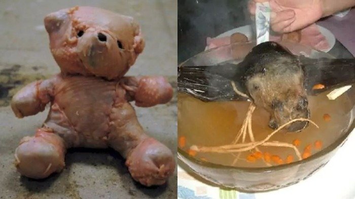 1. Makanan ini tampak seperti burung yang lagi hamil dan masih hidup.