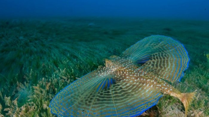 Ikan ini mengembangkan siripnya bagai pesawat yang terbang bebas di angkasa.