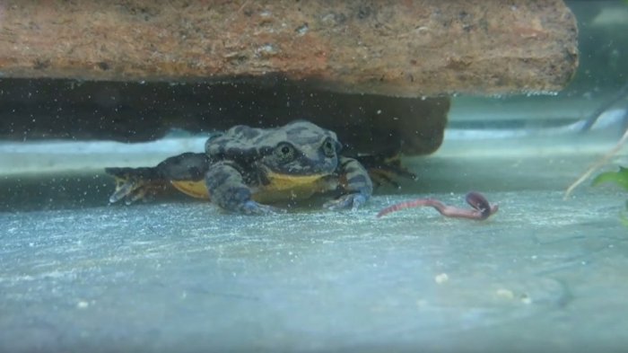 Bahkan meskipun kodok betina tersebut masih berupa berudu kecil.