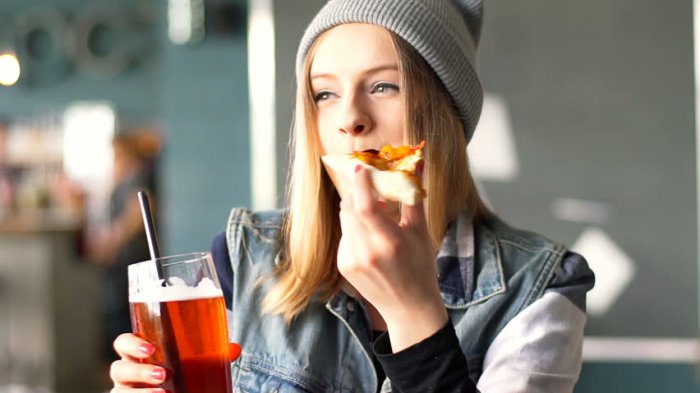 Selain air putih, minum minuman beralkohol atau bersoda selama makan juga sebaiknya dihindari.